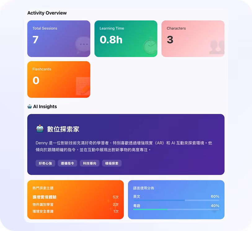 將 AI Agent 應用於課堂、家中、戶外學習,系統會自動分析並持續優化表現。